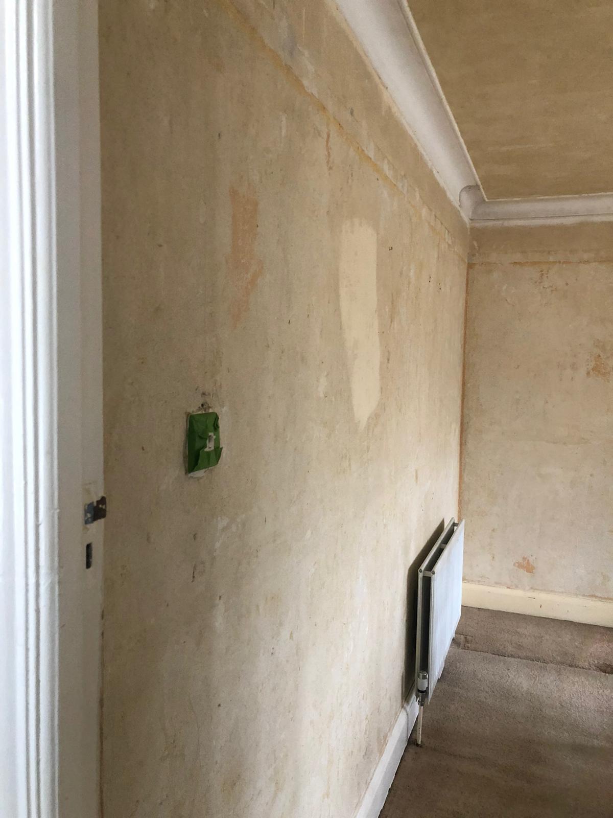 - Strip all wallpaper on ceiling and walls, remove one wardrobe.